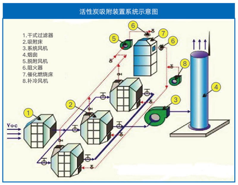 活性炭吸附裝置是利用吸附-脫附-濃縮三項(xiàng)連續(xù)變溫的吸、脫附程序,使低濃度、大風(fēng)量有機(jī)廢氣濃縮為高濃度、小流量的濃縮氣體。其裝置特性